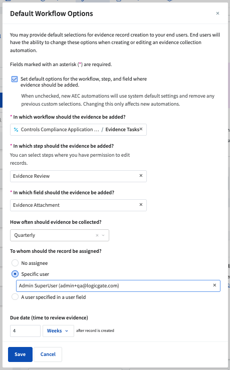 3. This new Evidence Collection Automations subsection will allow builders to select default record creation settings for end users. Builders can choose the following: