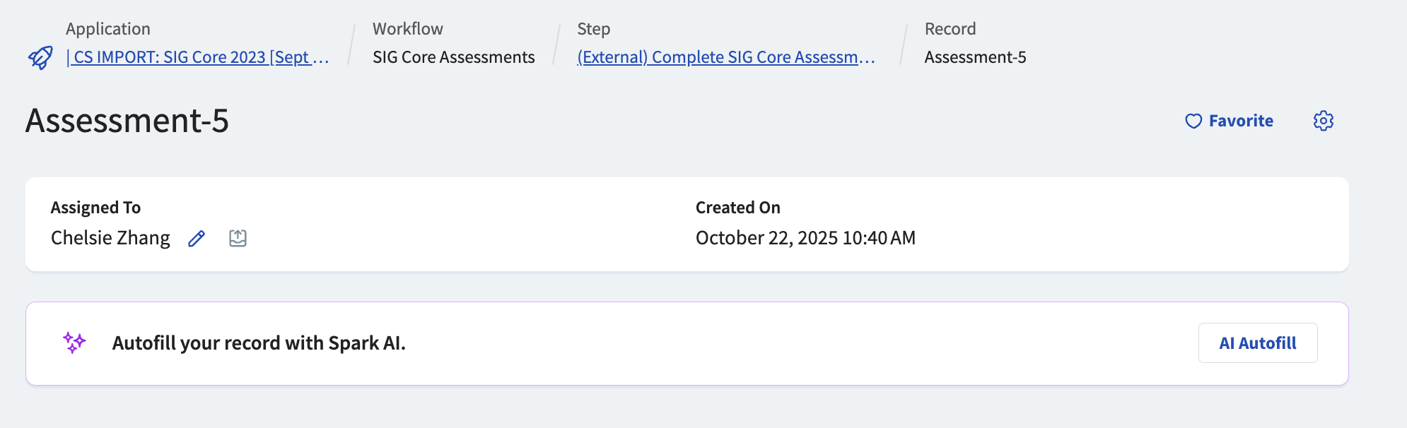 By enabling Autofill in the Spark AI Integration Card, Autofill becomes available across all Applications and Workflows within the environment. Record assignees—both internal and external users—can then use Autofill to complete records efficiently.