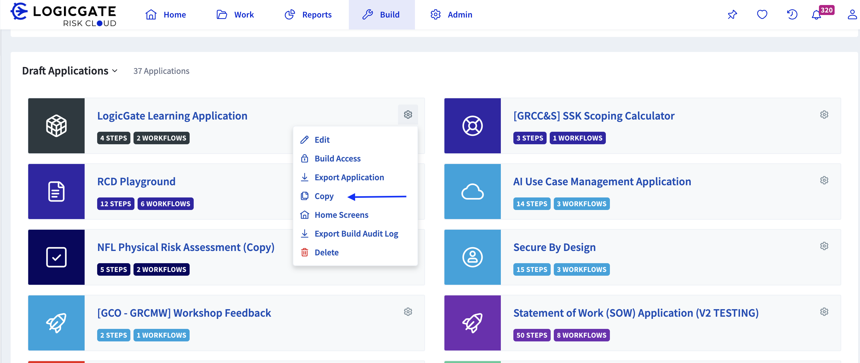 If your Application includes a JIRA workflow, you must contact LogicGate Support for assistance with copying this application.