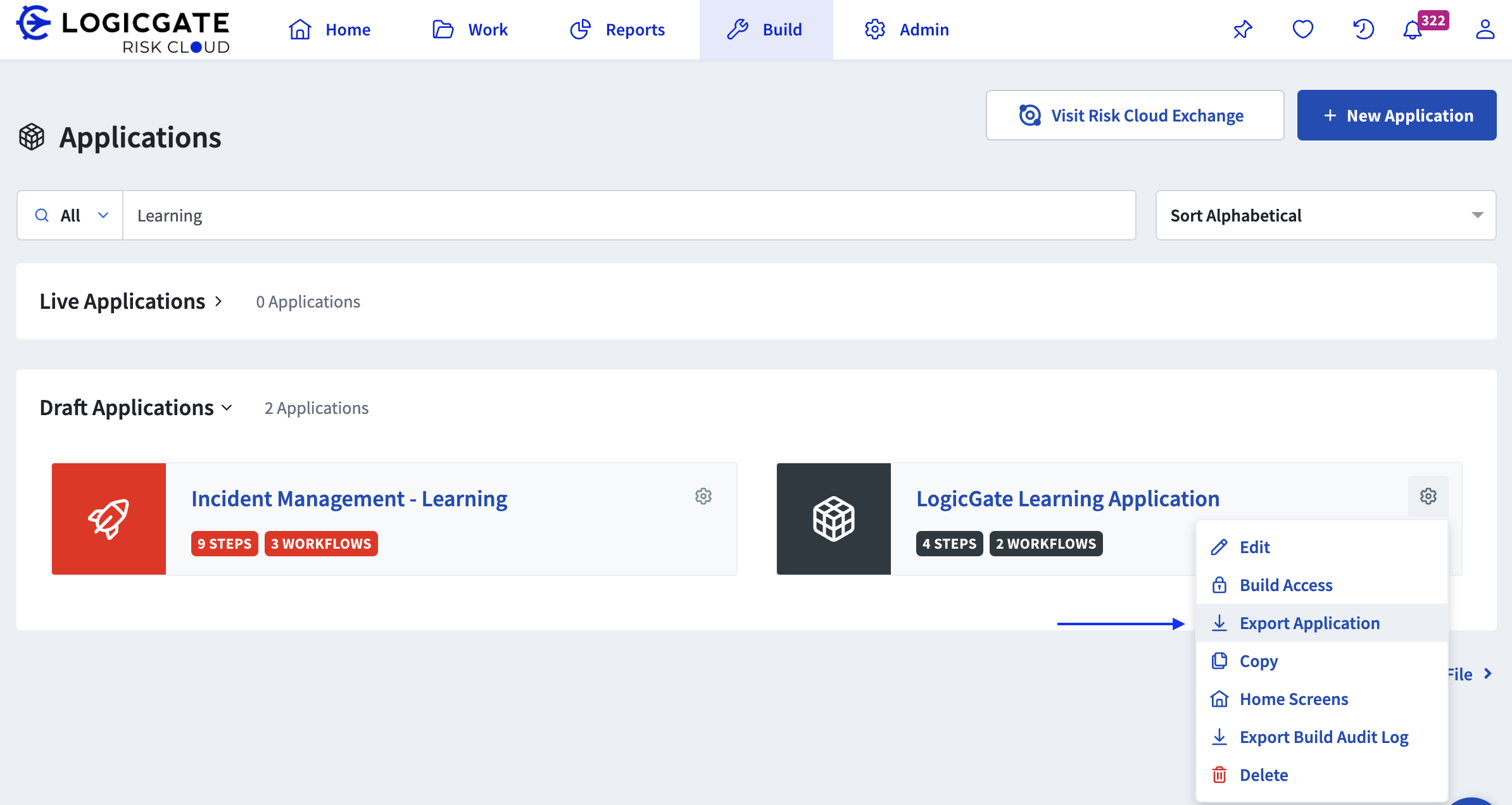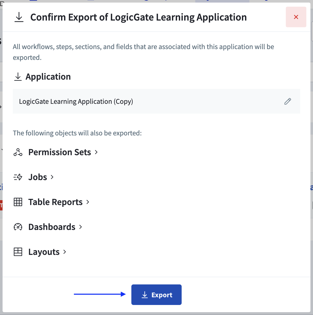 If your Application includes a JIRA workflow, you must contact LogicGate Support for assistance with exporting this application.