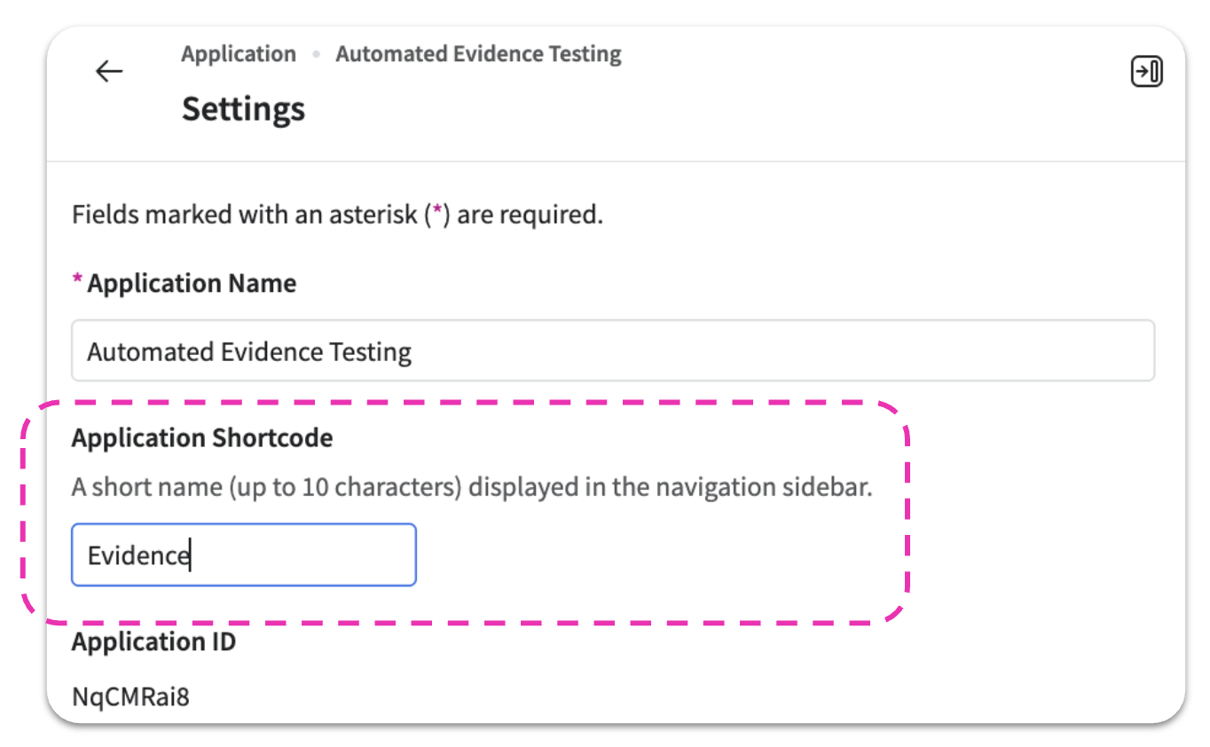 App Shortcode is a new configurable field (up to 10 characters) in your application settings. It controls exactly how the application's name is abbreviated in the sidebar. When a shortcode is set, it replaces the auto-generated abbreviation.